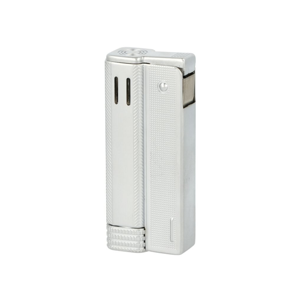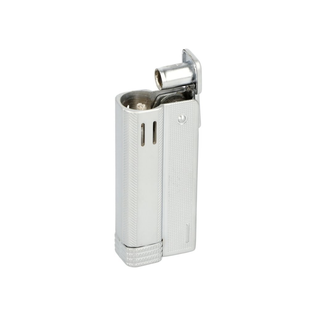 Kovový kamínkový zapalovač rakušák ve stříbrném polomatném provedení a texturovaným povrchem.