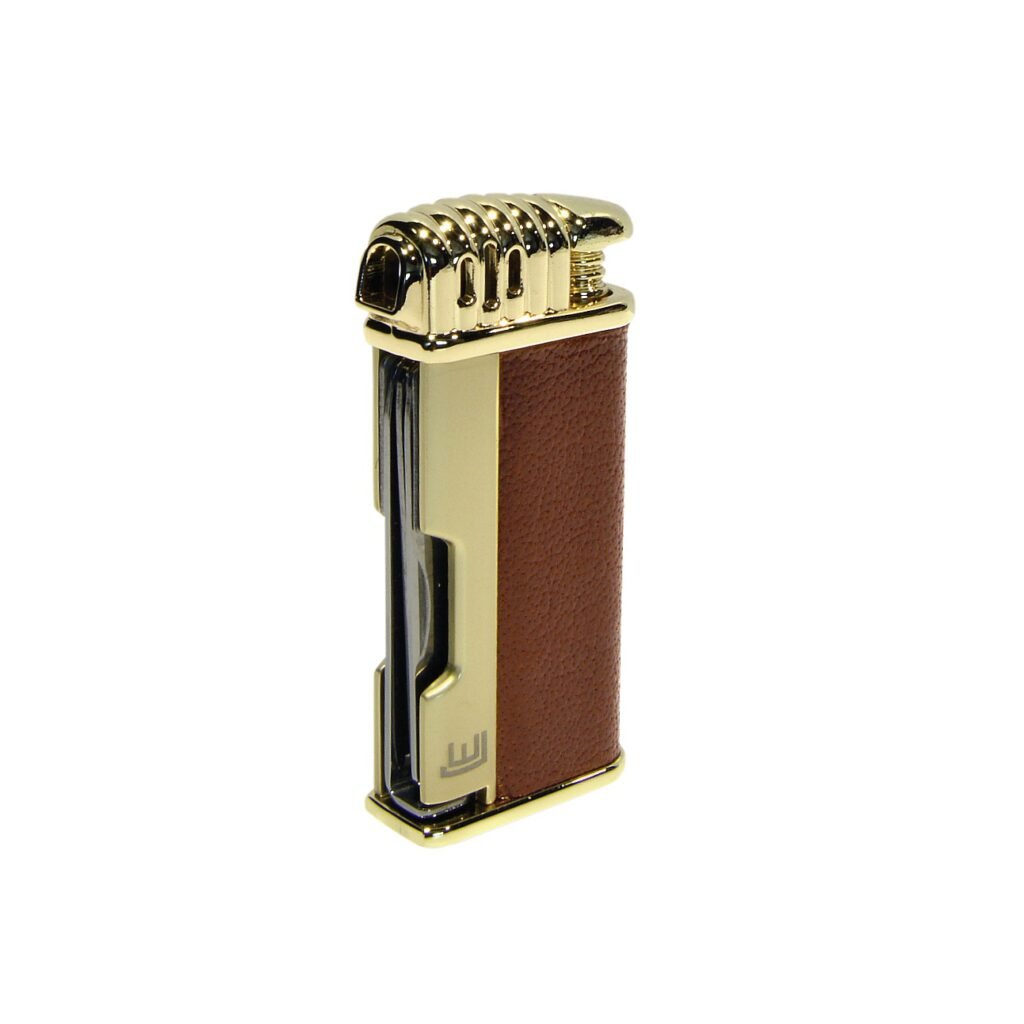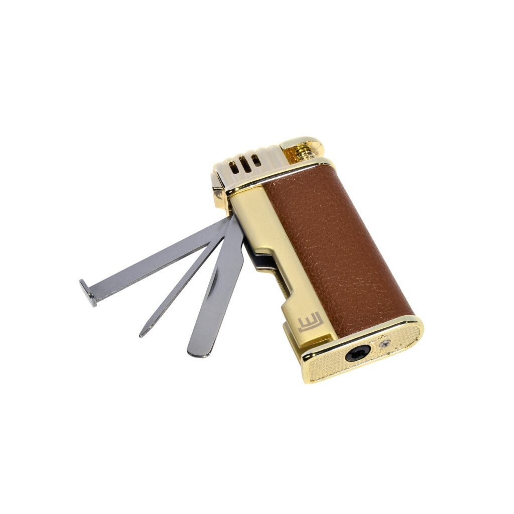 Dýmkový zapalovač. Integrováno dusátko a lžička na čištění dýmky. Dýmkový zapalovač je plnitelný.