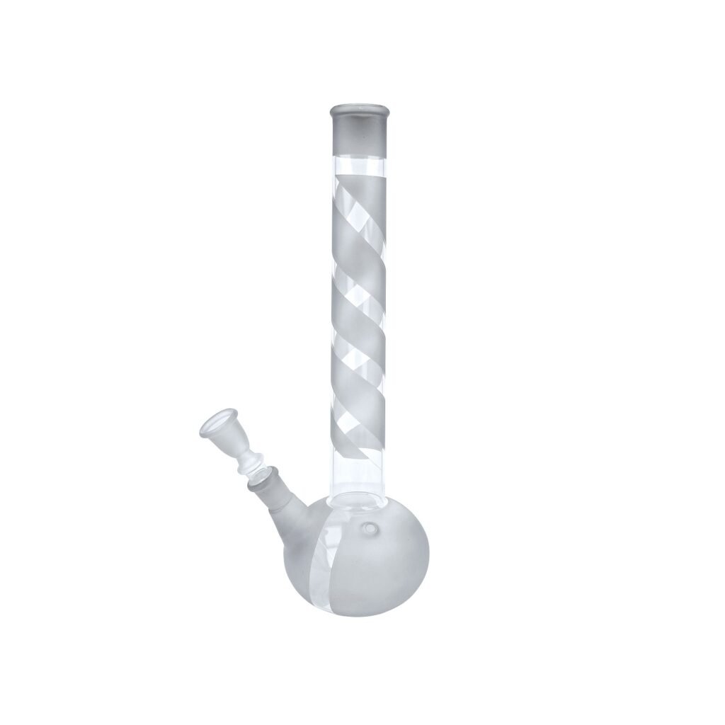 Skleněný bong Straight Smoked. Rovný bong ve tvaru laboratorní baňky v kouřovém odstínu s prvky v matném provedení je ukončený středně silným hrdlem. Otvor pro turbo najdeme ve spodní části bongu. Oproti standardním bongům je tento prémiový bong vyrobený z tepelně odolného borosilikátového skla tloušťky 2,5 mm. Jednodílný chillum bongu je ukončený nalisovaným kotlíkem s otvorem cca 7 mm.