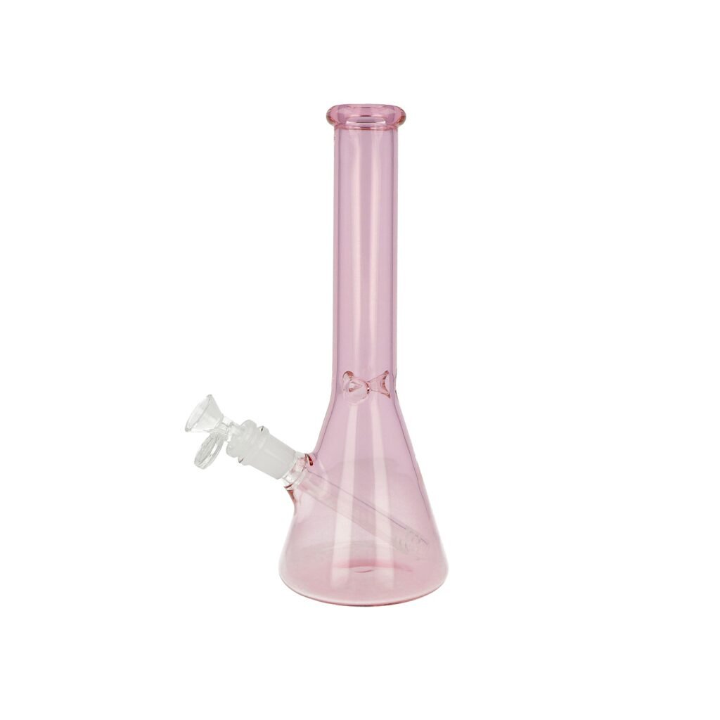 Skleněný bong Super Heroes Pink. Rovný transparentní bong ve tvaru Beaker je v jemném růžovém tónu.