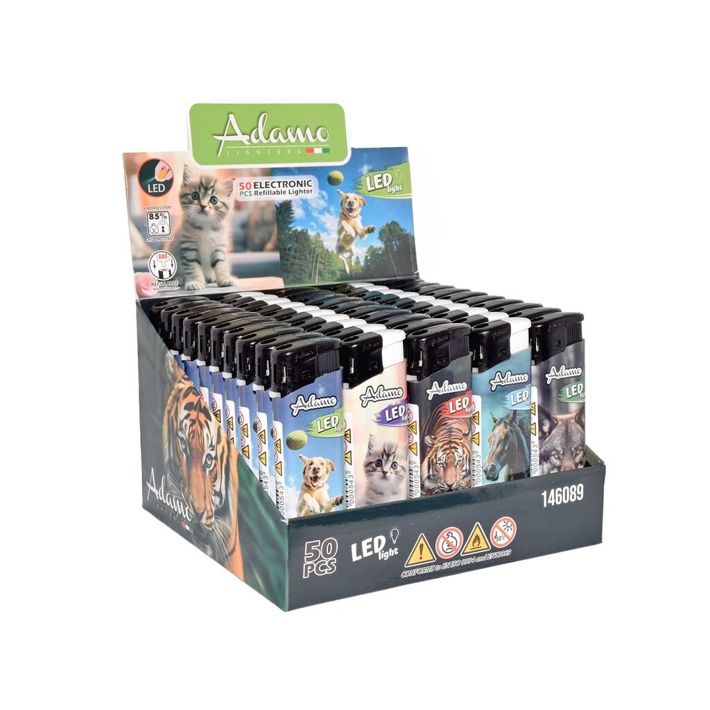 BOX 50 ks - Zapalovač - Adamo Piezo - LED Animals