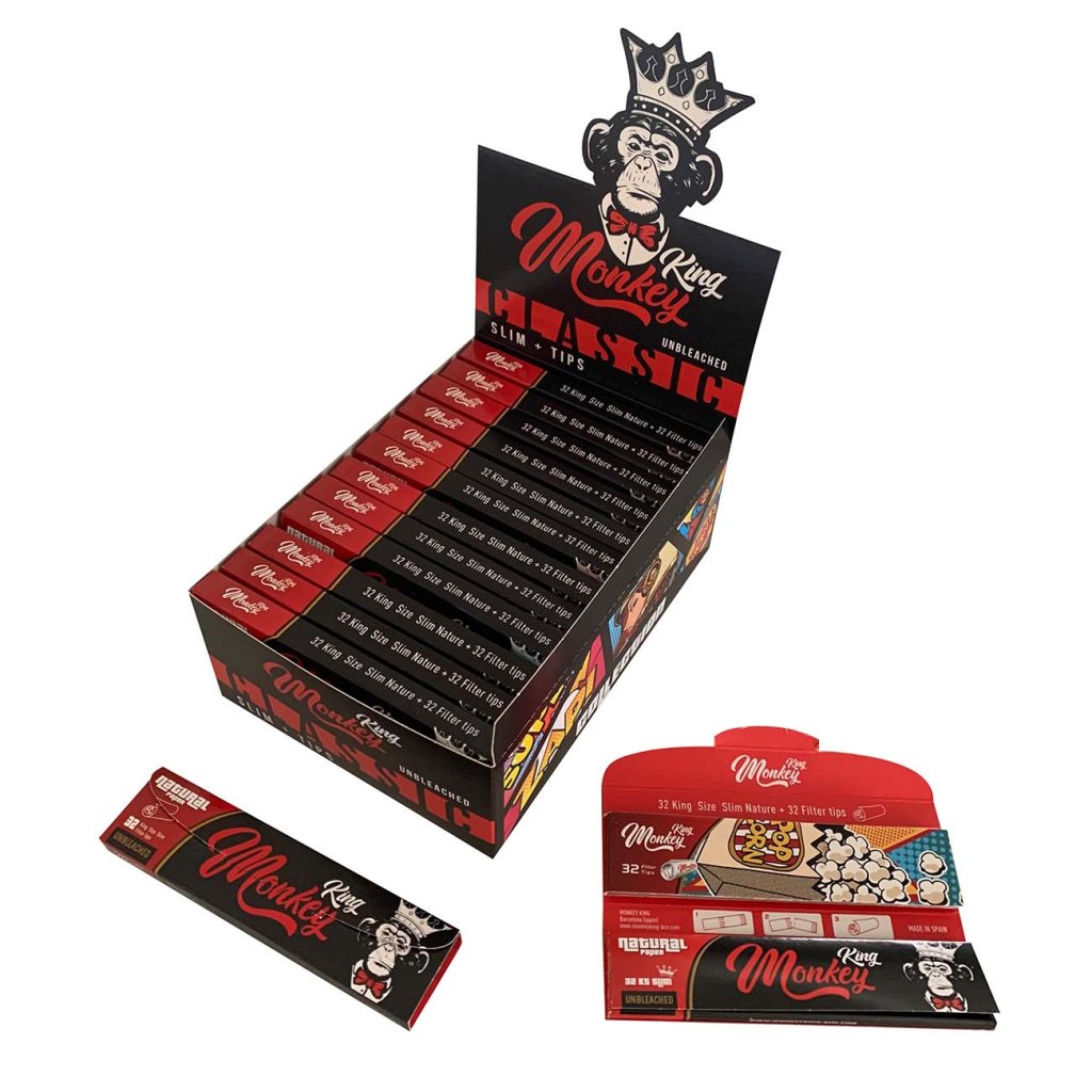 Monkey King® Classic Papers KS Slim + Tips jsou ultra jemné, nebělené rolovací papíry s povlakem z přírodní arabské gumy. Průhledné papíry pro nefalšovaný požitek hoří pomalu.