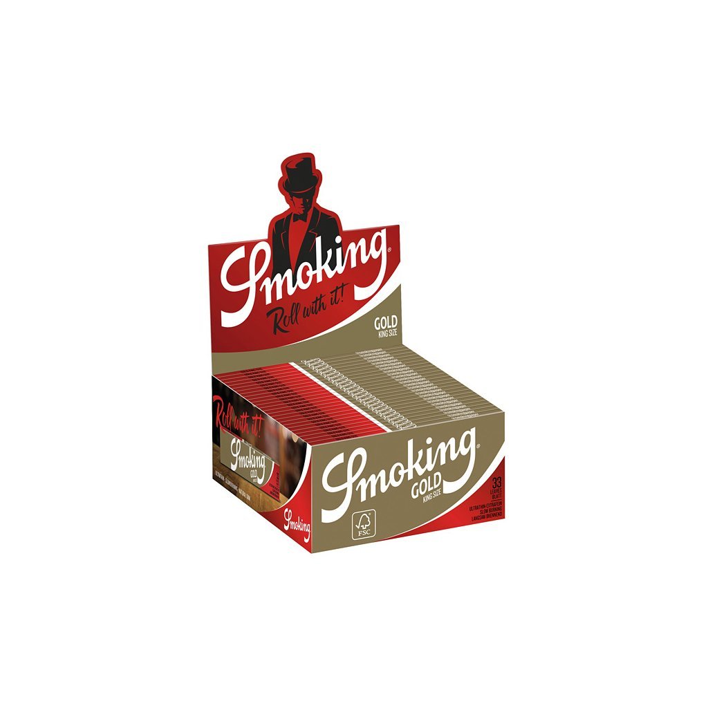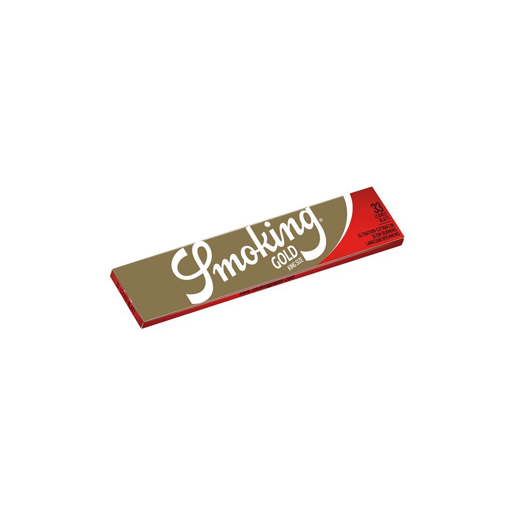Cigaretové papírky Smoking Gold King Size Slim jsou luxusní volbou pro náročné kuřáky. S elegantním designem a dlouhým formátem poskytují pohodlné balení cigaret. Vyrobeny z vysoce kvalitního papíru a lepicí pásky pro skvělou manipulaci. Vyrobeno z rýžového papíru a prvotřídním lepem z přírodní arabské gumy. Balení obsahuje 33 pomalu hořících papírků v knížce.