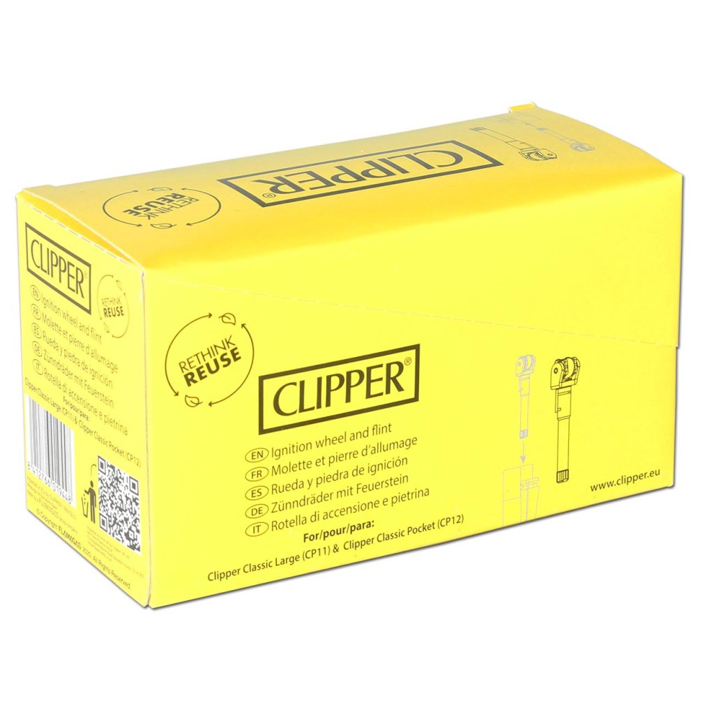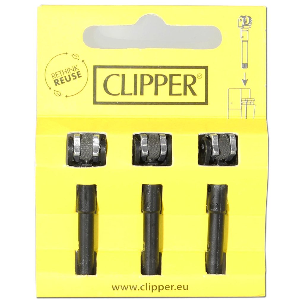 Kultovní zapalovače CLIPPER® mají vyměnitelný křemenný systém s vyměnitelným křemenným kamenem pro více než 3000 zapálení. Pazourkový systém je alternativně oblíbený pro použití jako pěchovací nástroj.