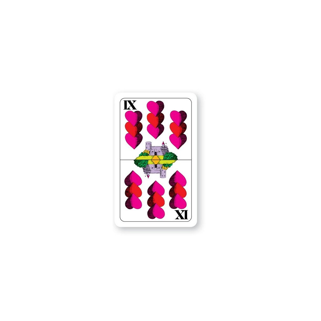 …herní sada zobrazuje na jednotlivých figurách legendu o Vilému Tellovi, obraz karet je s drobnými změnami stejný již 150 let. Obrazy jednotlivých es zobrazují roční období od jara do zimy. Károvaný revers je typický pro tuto hru. Mezi hráči je velmi oblíbený pro svoji praktičnost.