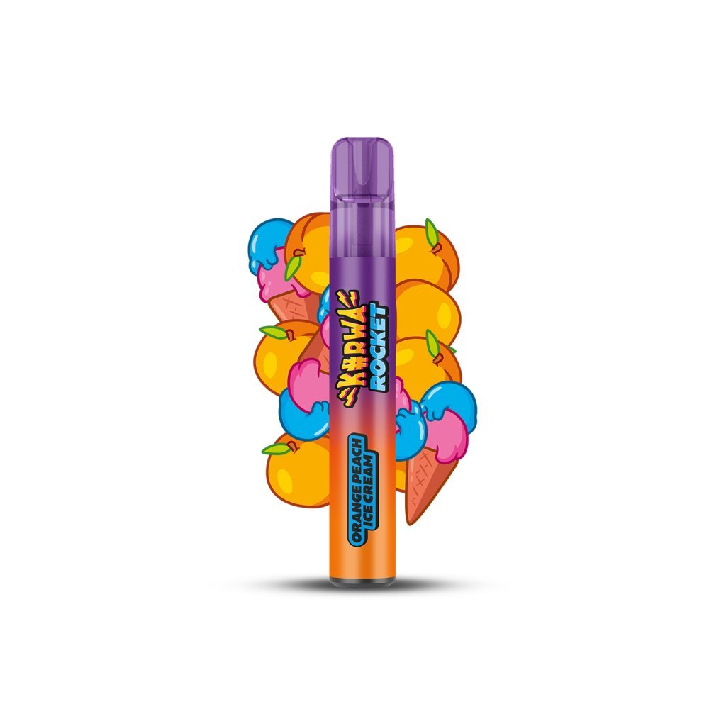 Orange Peach Ice Cream s chutí osvěžujících pomerančů, sladkých a krémových broskví v ledovém a smetanovém zmrzlinovém kabátku. Kurwa Rocket je jednorázová e-cigareta s obrovskou výdrží až 1200 potahů. Díky tak velké výdrží disponuje zejména kvůli keramické žhavící cívce a tedy rovnoměrnému a pozvolnému odpařování e-liquidu. Keramická cívka také mnohem lépe přenáší chuť a vytváří hustší páru.