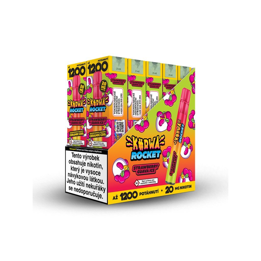 Strawberry Guava Ice s chutí sladkých jahod a jemné exotické kvajávy v chladivém kabátku. Kurwa Rocket je jednorázová e-cigareta s obrovskou výdrží až 1200 potahů. Díky tak velké výdrží disponuje zejména kvůli keramické žhavící cívce a tedy rovnoměrnému a pozvolnému odpařování e-liquidu. Keramická cívka také mnohem lépe přenáší chuť a vytváří hustší páru.
