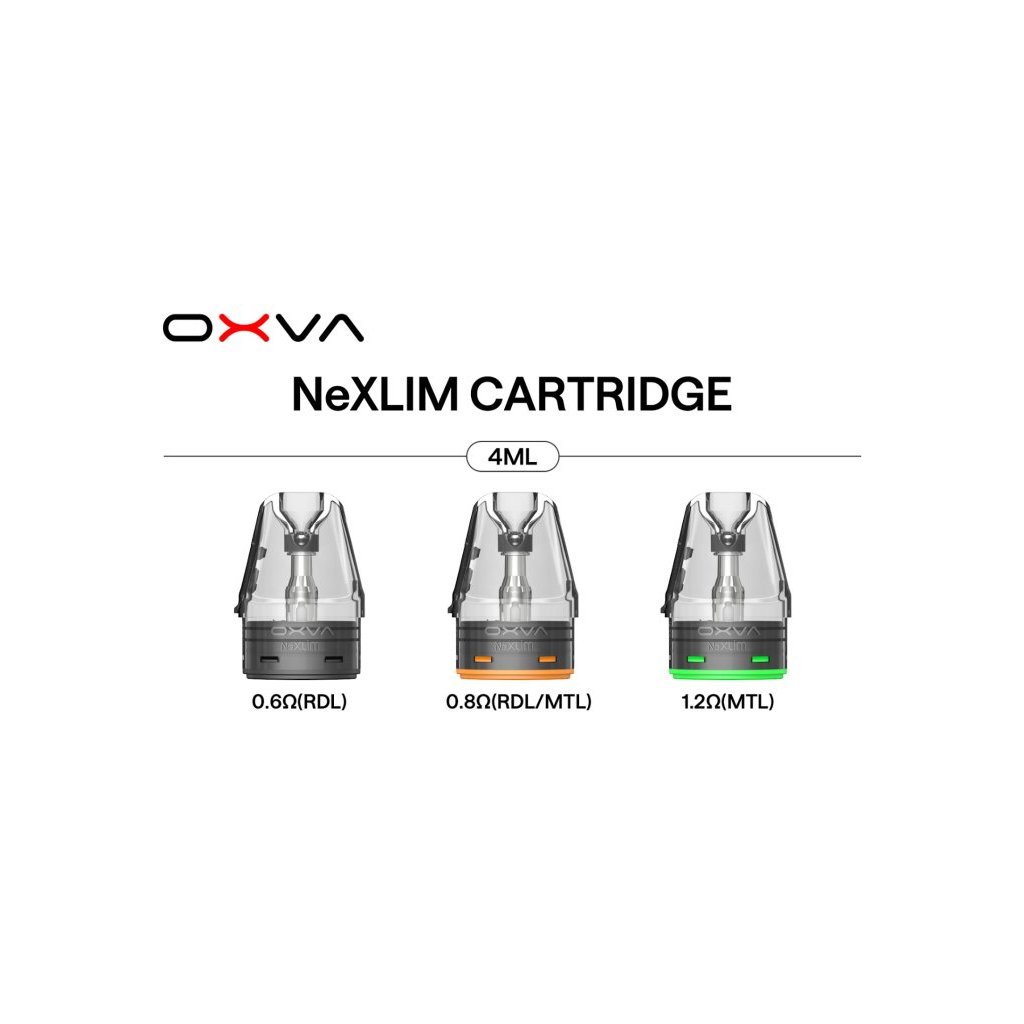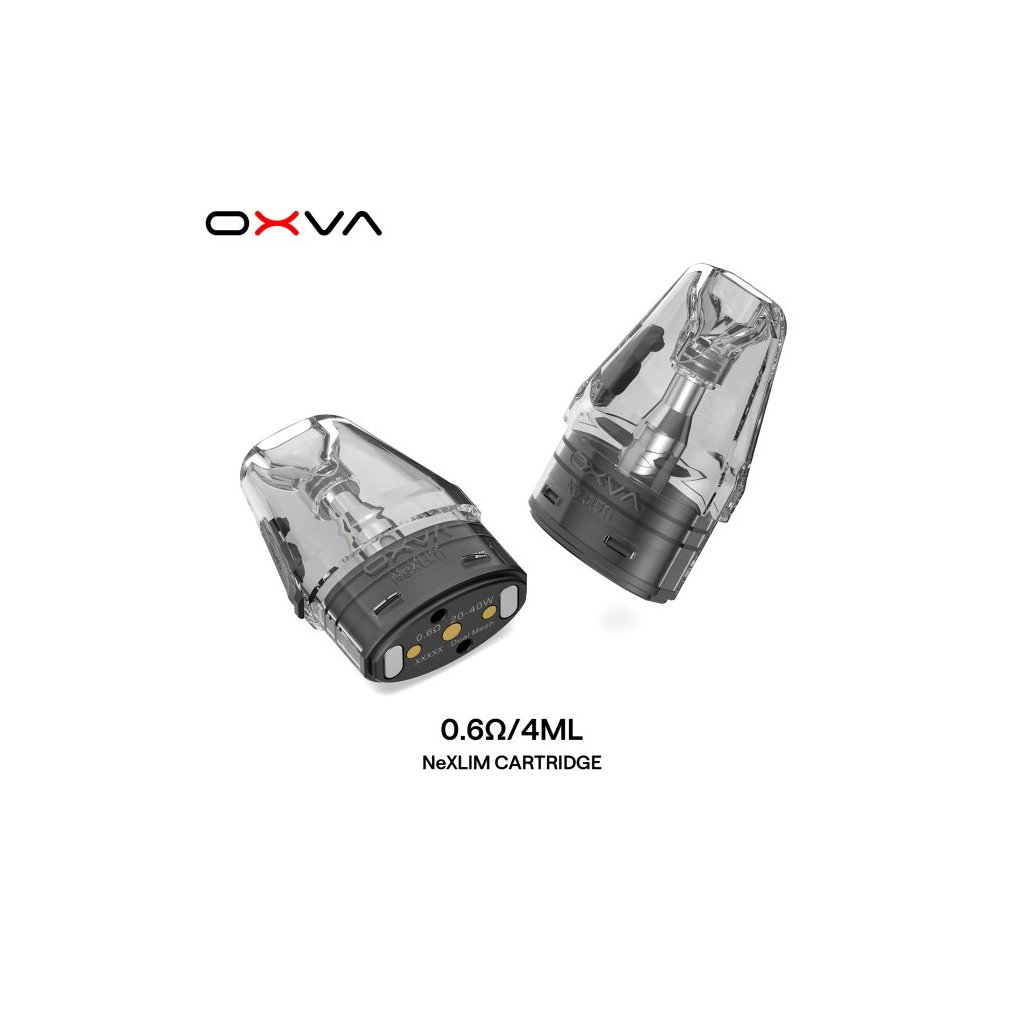 0,6 ohm cartridge NeXLIM s vrchním plněním, které pojmou až 4ml liquidu. POZOR - nejsou kompatibilní se zařízením z řady OXVA XLIM !!!