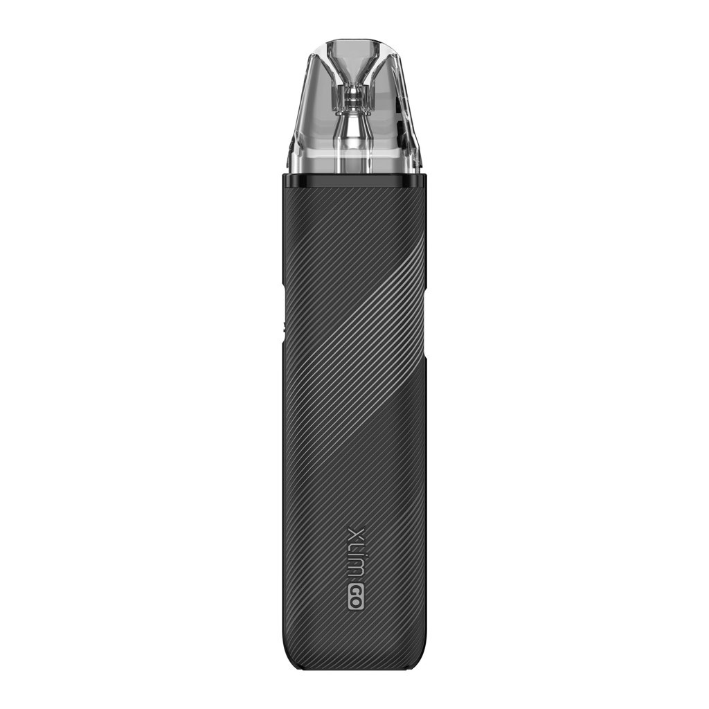 Xlim GO je úžasně vypadající POD, který nabídne příjemně veliké rozměry s elegantním povrchem, který je kombinací koženého potahu a lesklých kovových kontur. Po bocích naleznete plynulé nastavení airflow a superrychlý nabíjecí port USB-C. Zepředu zařízení je elegantně řešená LED dioda ve tvaru loga OXVA. Řídí se klasickým schématem RGB (Zelená - 100-60%, Modrá - 60-20%, Červená - 20-0%).