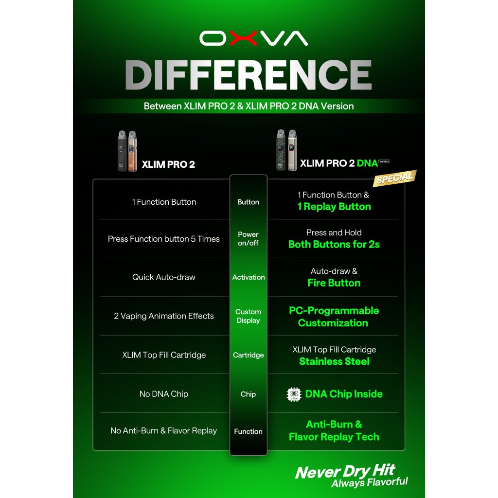 OXVA Xlim Pro 2 DNA Pod Kit přináší revoluci do světa pod systémů díky spolupráci dvou gigantů: OXVA a Evolv. Tento pod systém je vybaven špičkovým čipem Evolv DNA, což ho činí nejen technicky vysoce pokročilým, ale i skvostným designovým kouskem pro náročné vapery. Pokud hledáte zařízení, které splňuje nejvyšší standardy výkonu, kvality a preciznosti, Xlim Pro 2 DNA je pro vás ideální volbou.