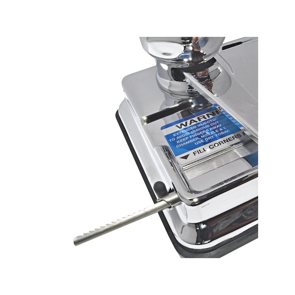 Umožňuje plnit cigarety s regular filtrem (15mm) nebo s long filtrem (24mm). Provedení: chromové.