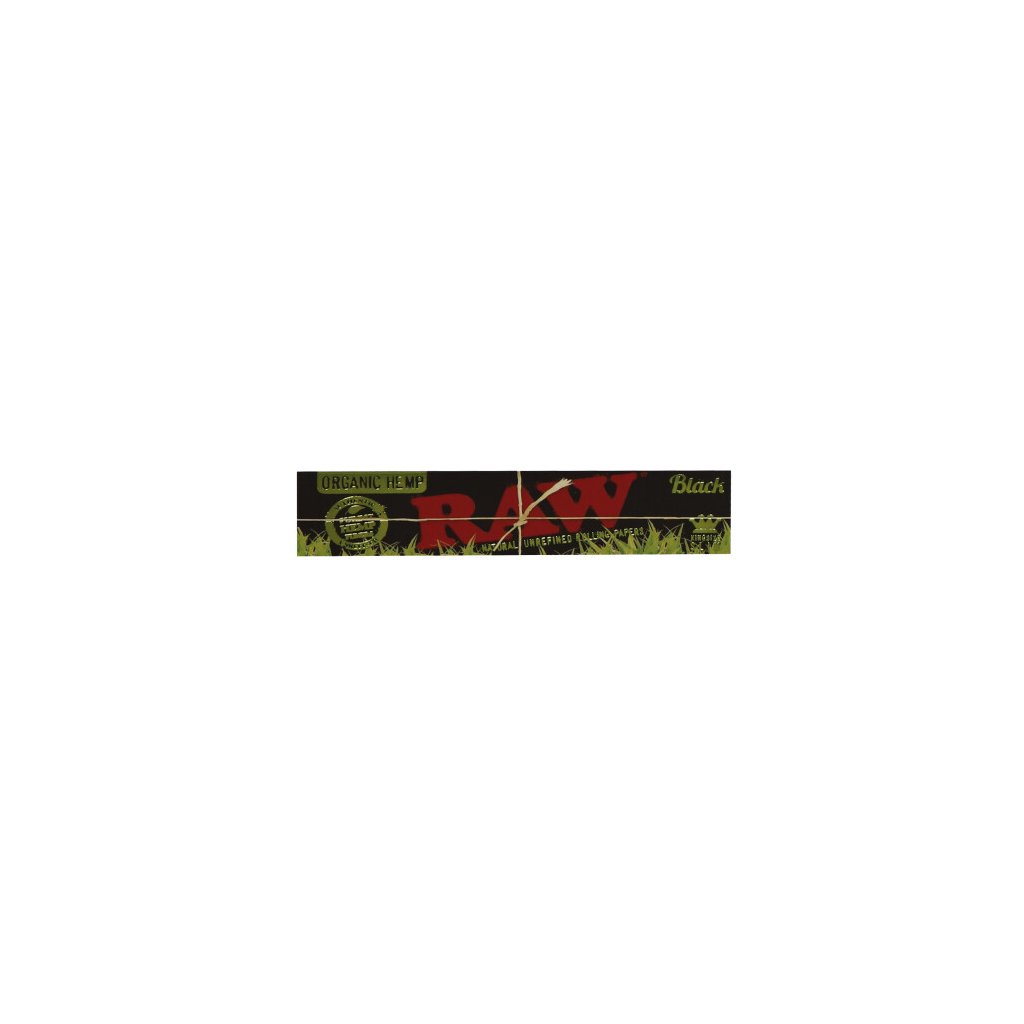 RAW černé organické konopné papíry Kingsize Slim Rolling Papers. Vyrobeno z přirozeně nerafinovaných rostlin s nejčistší přírodní gumou.