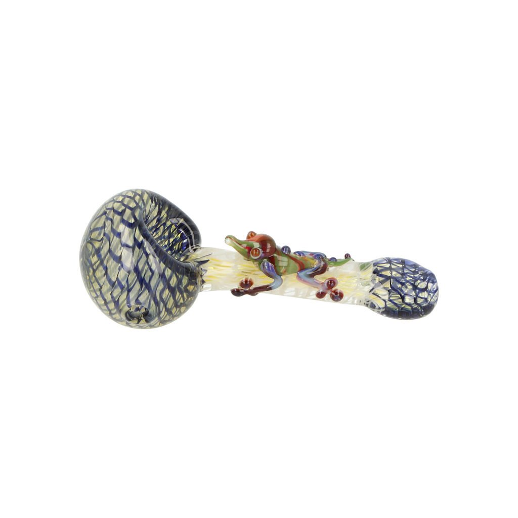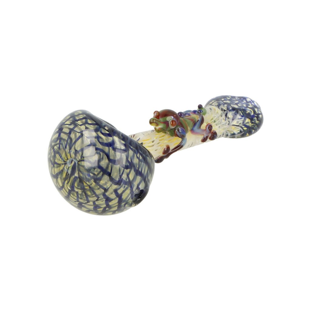 Skleněná šlukovka Pyrex Gekoneček s turbem. Menší odolná skleněná dýmka je zdobená malým Gekonkem.