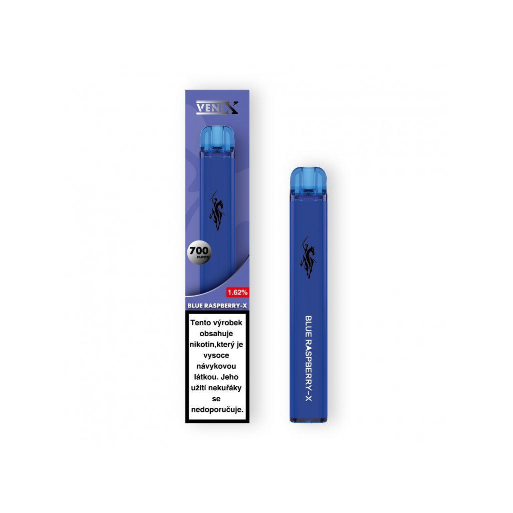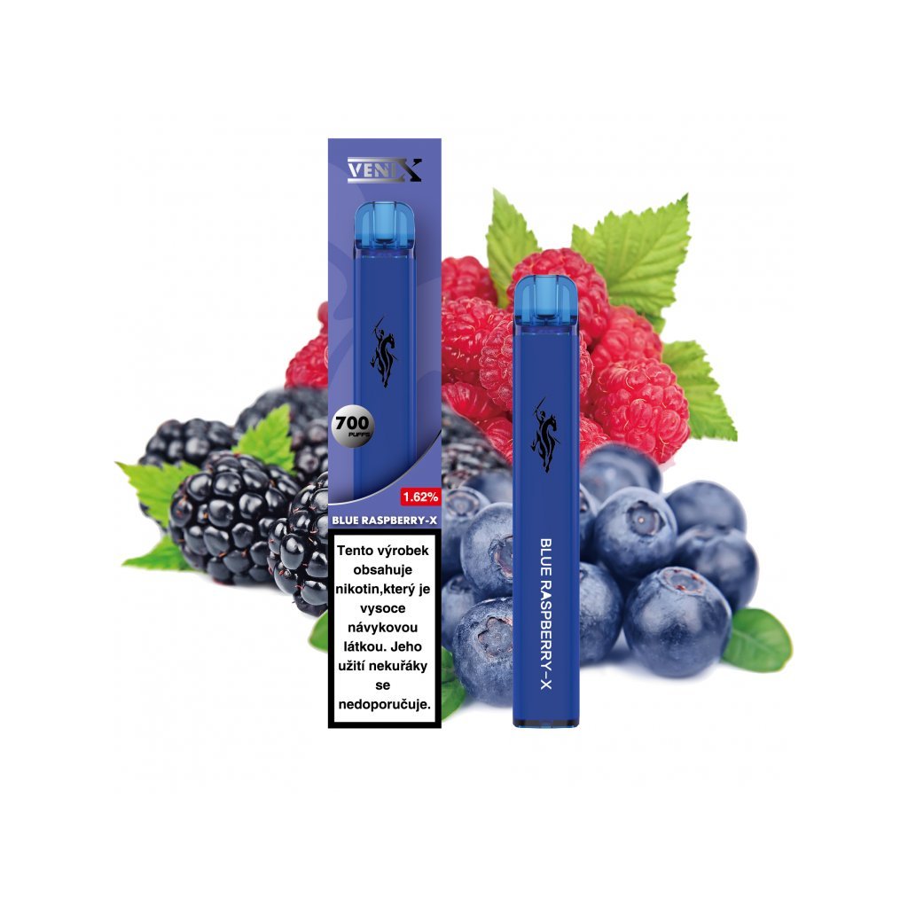 Jednorázová elektronická cigareta VeniX s příchutí malin, borůvek a ostružin - Blue RASPBERRY-X. Až 700 potahů a příjemnou chutí. Užijte si perfektní vaping s naši elektronickou cigaretou VeniX.