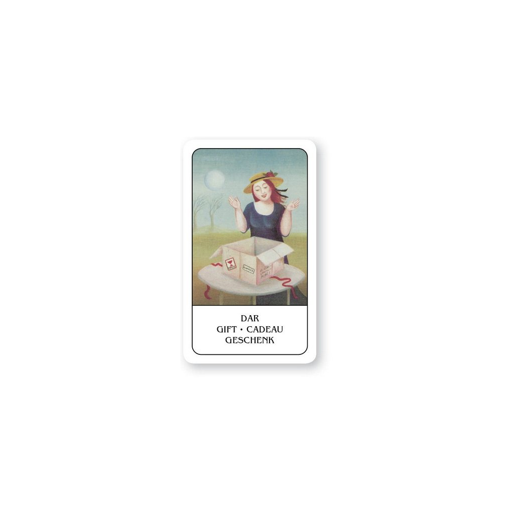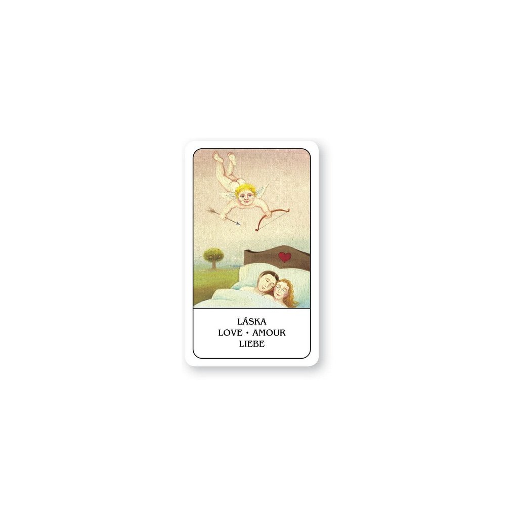 Tyto karty osloví každého, komu se dostanou do ruky. Jednotlivé karetní listy obsahují nádhernou ukázku naivního malířství doprovázenou výstižným popiskem. Najdeme zde karty s názvem Štěstí, Soudce, Společnost, Milenka, Milenec, Vdova, Vdovec, Dítě, Bohatství, Dům, Dar, Naděje nebo třeba Žárlivost. Na rozdíl od cikánských karet zde nové figurují karty Klevety a Přetvářka, přičemž tato karta nemusí mít vždy ta striktně záporný obsah jako původní karta Faleš. Výklad tvoří devět karet vyložených v obrazci třikrát tři. Obrázky čteme jak v řadě, tak i ve sloupci či diagonálně, proto musíme pečlivě posuzovat souvislosti mezi všemi vyloženými kartami.